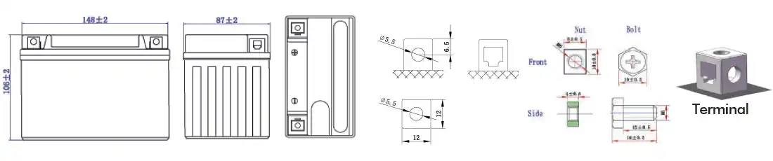 AGM Motorcycle Battery 12V 8Ah 135A CCA + I