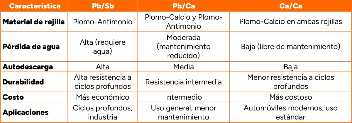 - Pb/Ca : Idéale pour des applications polyvalentes avec un besoin de maintenance réduit.