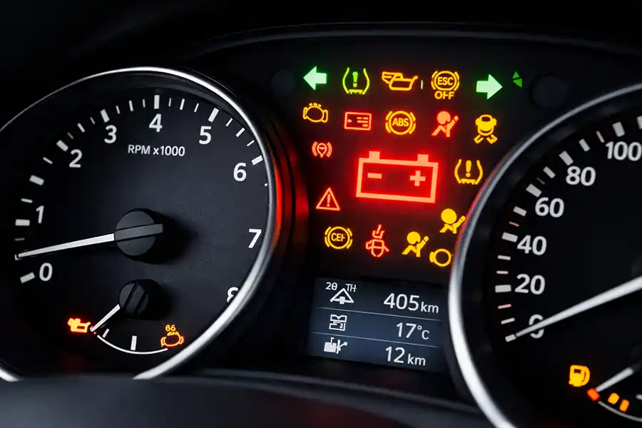Cuando se enciende el testigo de batería en el cuadro (el icono con forma de batería), lo más habitual es que el coche esté avisando de un problema en el sistema de carga, no “solo” de la batería. Si sigues circulando, puede llegar un momento en el que el vehículo se quede sin energía y se pare.